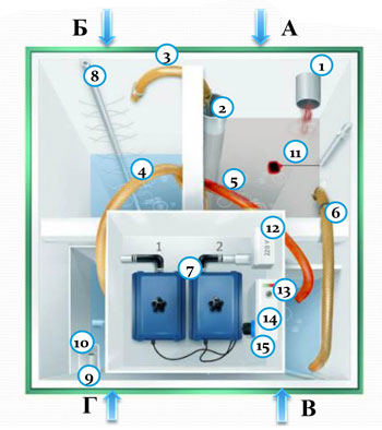 • Работает полностью автономно, нет необходимости вызывать ассенизационную технику. Режимы его работы регулируются автоматически в соответствии с объемом поступающих стоков. При этом очистные сооружения работают без снижения качества очистки даже в условиях российской зимы.